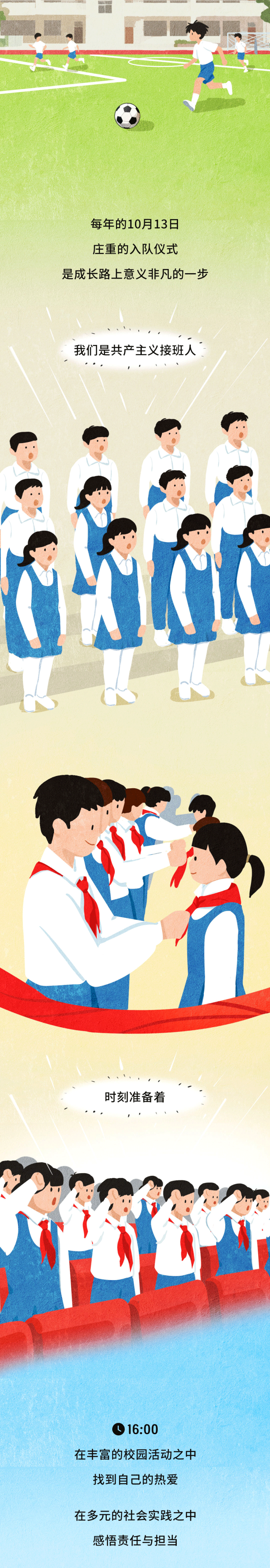 每年的这个日子,秋风送爽,队旗飘扬、队歌嘹亮,又有一批孩子成为光荣的少先队员。胸前那一抹永不褪色的红,带给我们骄傲,也赋予我们责任。它告诉我们,什么是荣誉,什么是集体,什么是“人民的利益高于一切”。