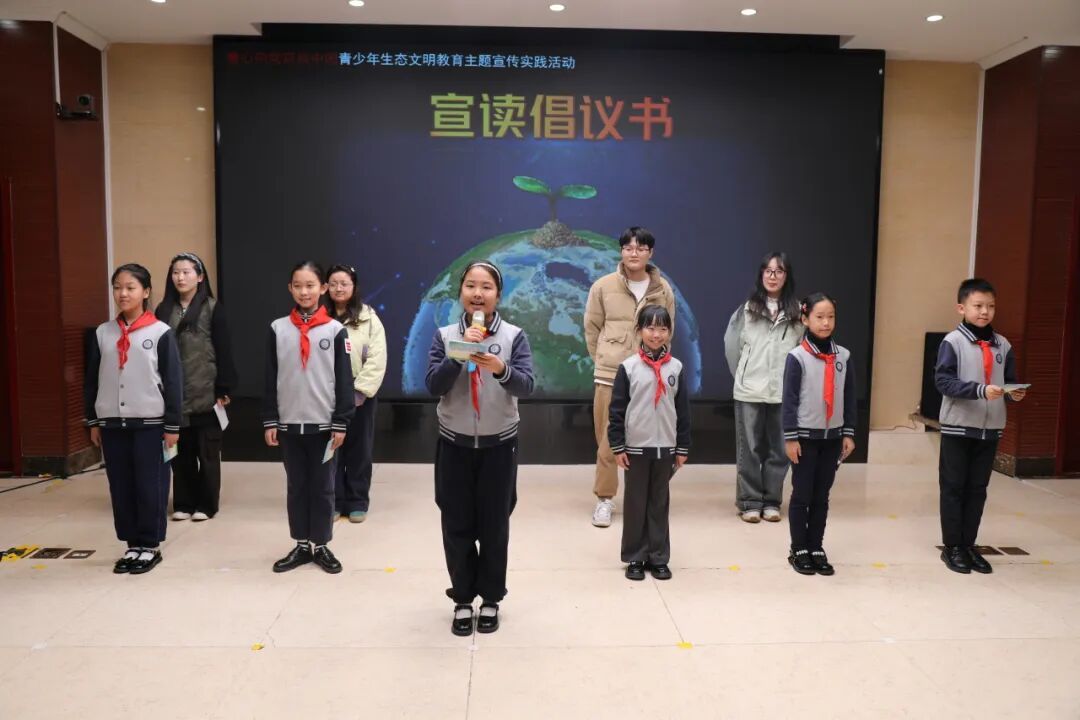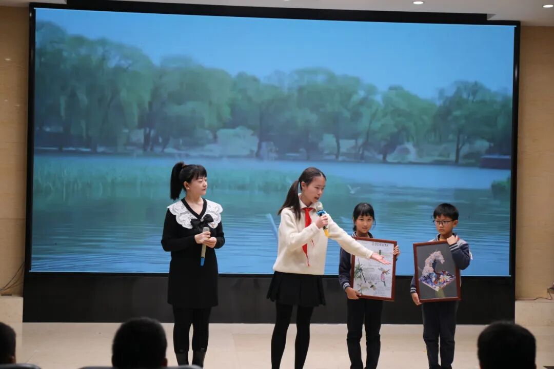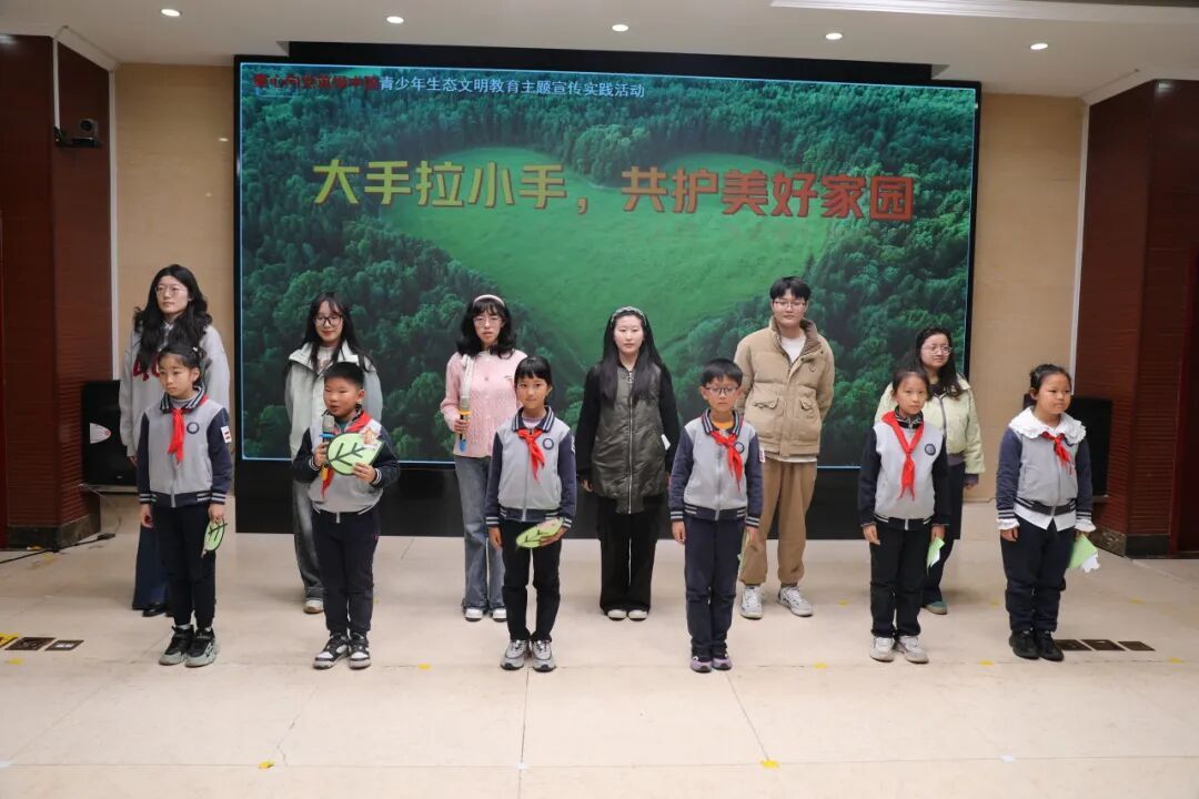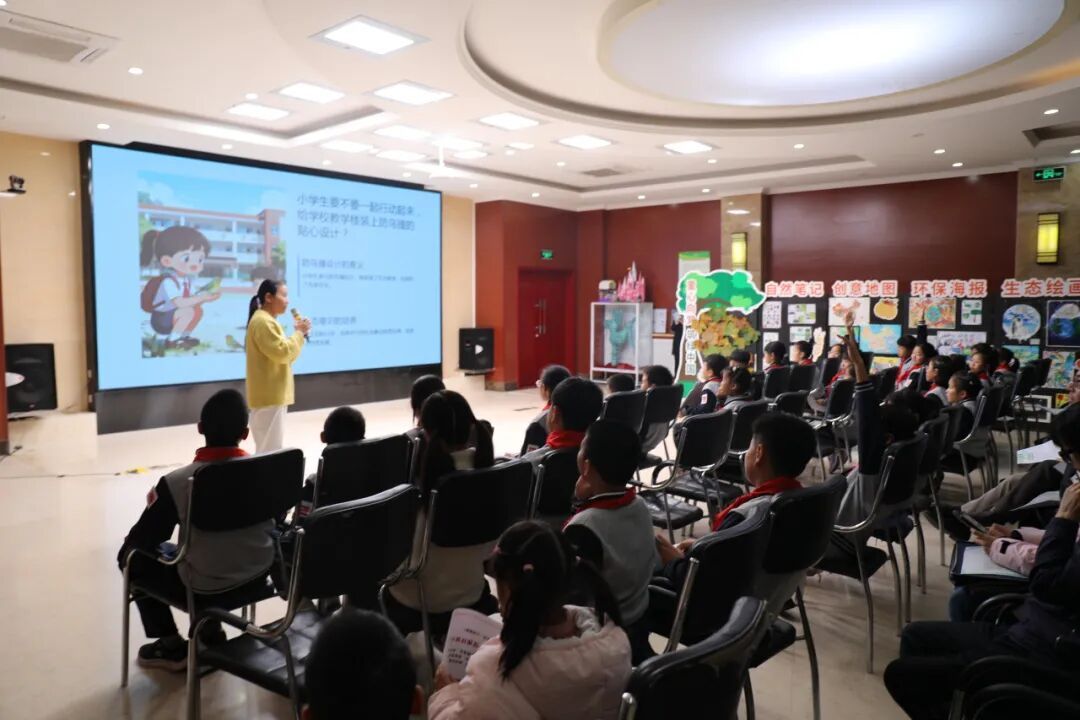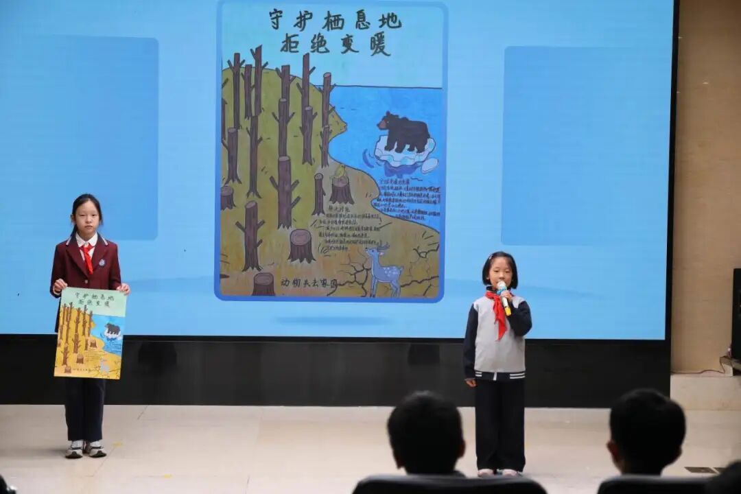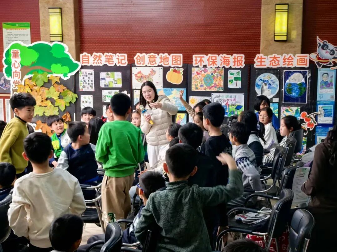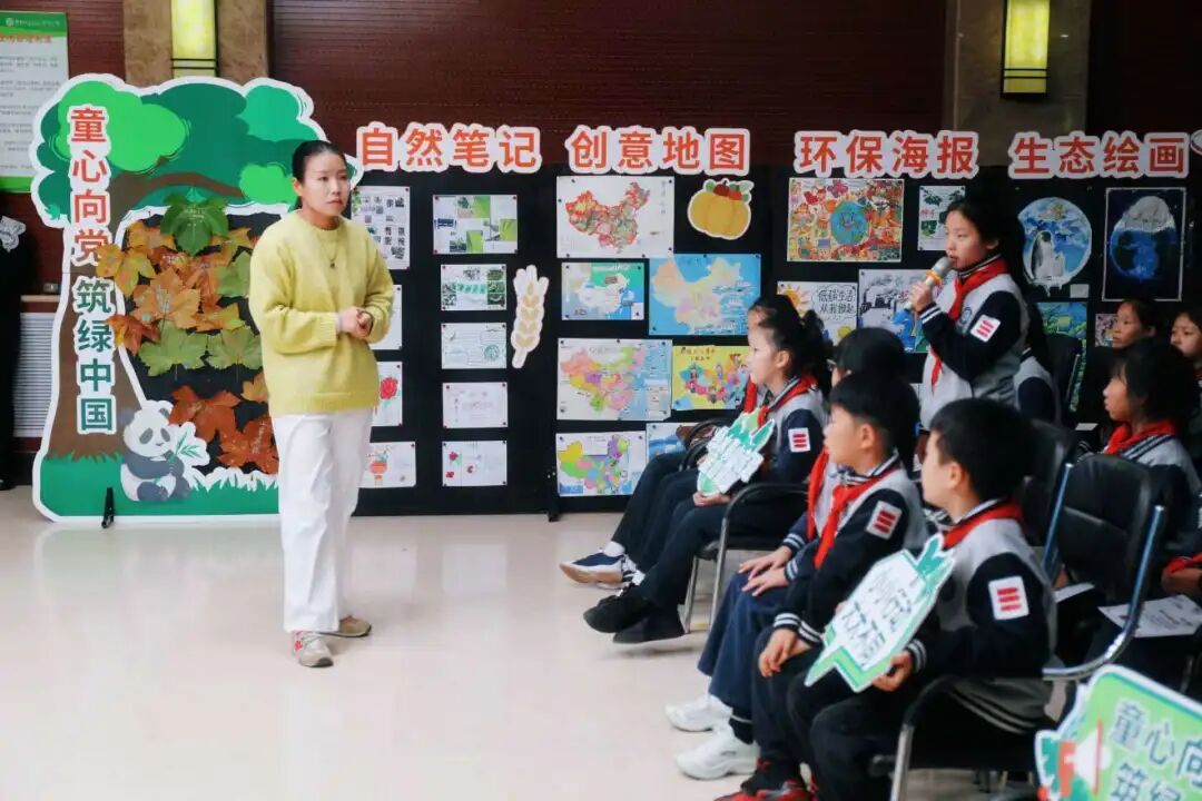 作品展示环节,通过现场大屏幕和主题展板,集中展出了同学们围绕生态文明创作的绘画与文字作品。这些作品题材丰富、充满童趣,生动记录了孩子们对自然的热爱与观察,有效传递了绿色发展的理念,引发了现场观众的共鸣与思考。