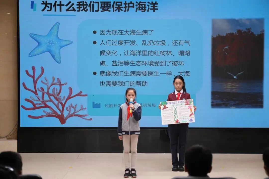 芳草远洋学生代表与林业大学学生代表共同携手宣读了《首都青少年生物多样性保护倡议书》,发出保护生物多样性的青春倡议。随后,大学生与小学生代表结对承诺,大手拉小手,保护美好家园,共同履行守护家园的绿色责任。