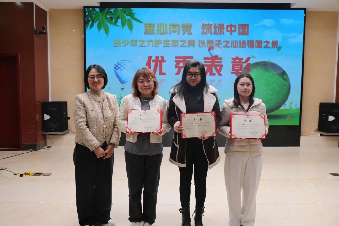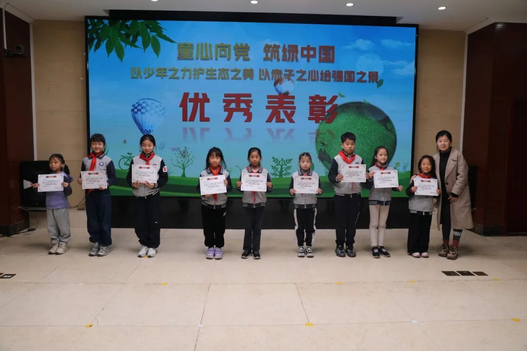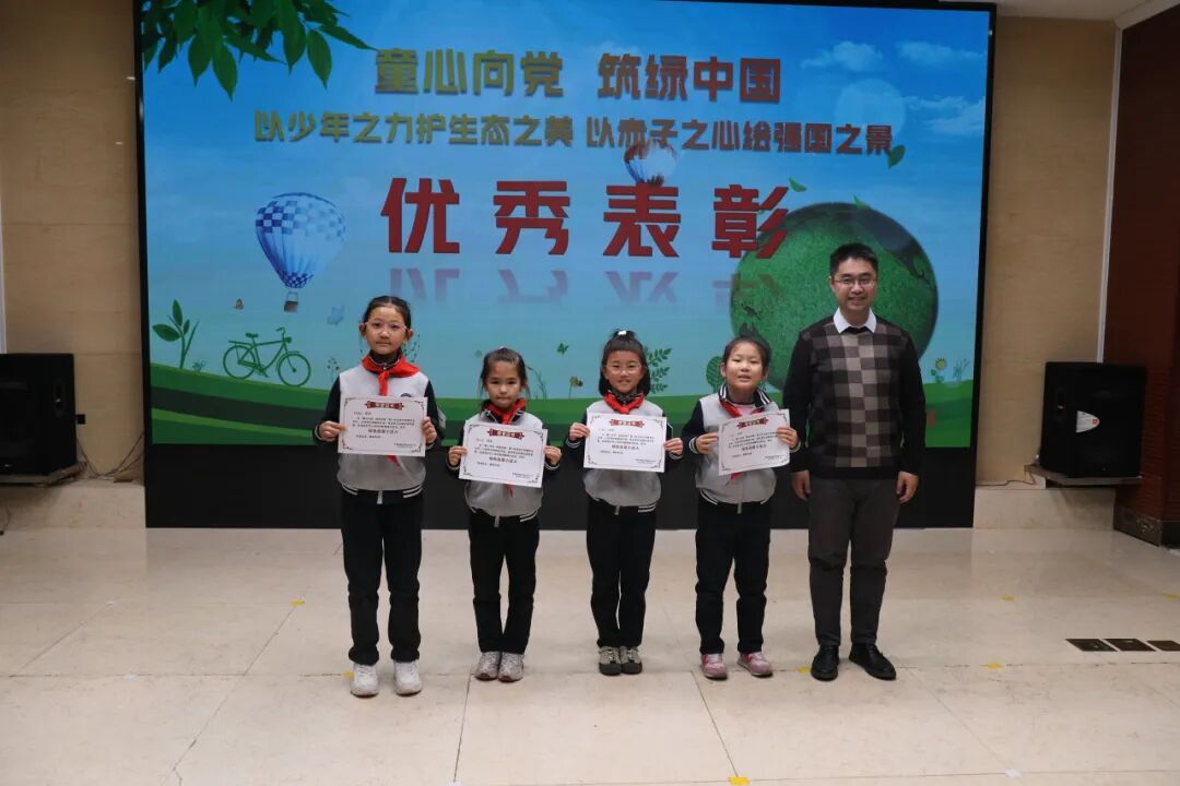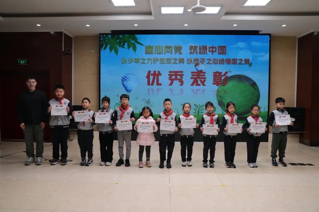 表彰环节中,与会领导为获得“生态文明宣传小使者”、“优秀环保小卫士”、“绿色创意小达人”荣誉的同学们颁发证书,韩校长为参与环保实践的家长和大学生志愿者颁发校外辅导员证书。