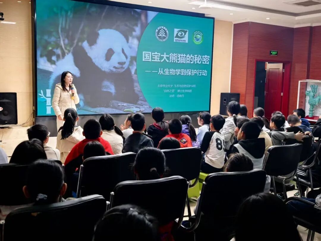 北京林业大学充分发挥学科专业优势,由“自然之语”博士生讲师团为学校带来优质科普课堂,以专业力量为青少年播撒生态保护的种子。胡晓丹老师带来的“国宝大熊猫的秘密”深受学生喜爱。