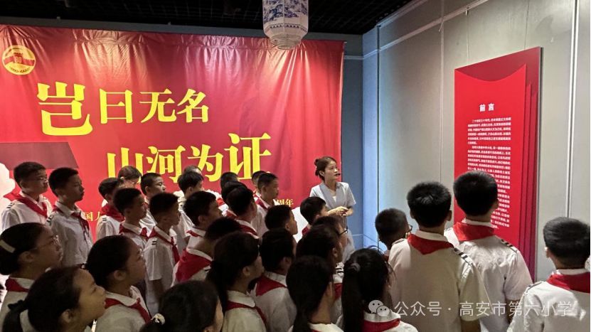 9月1日开学第一天,江西省高安市第六小学的少先队员们就走进高安市博物馆“岂曰无名 山河为证”抗战历史主题展厅,在这里开启了新学年的第一课。