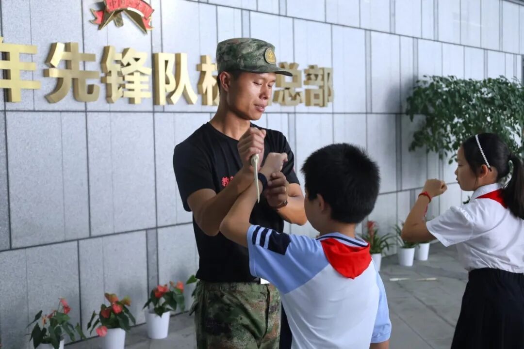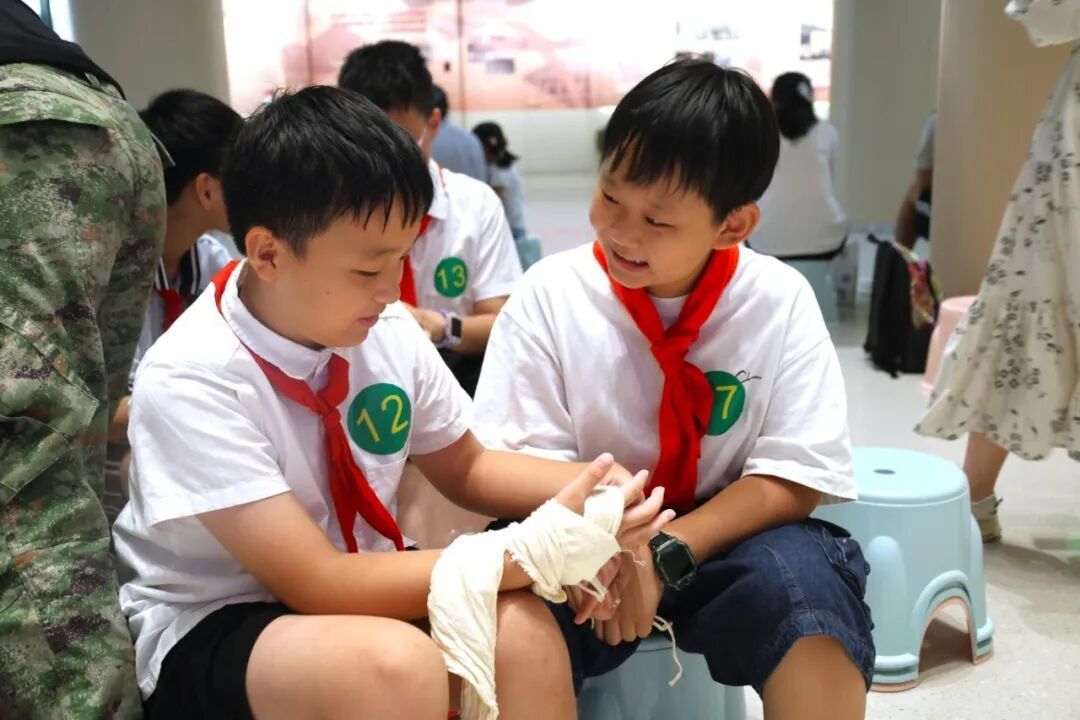 队员们学习基本的创伤包扎方法与自救互救技能,体会到生命的可贵与守护的意义。