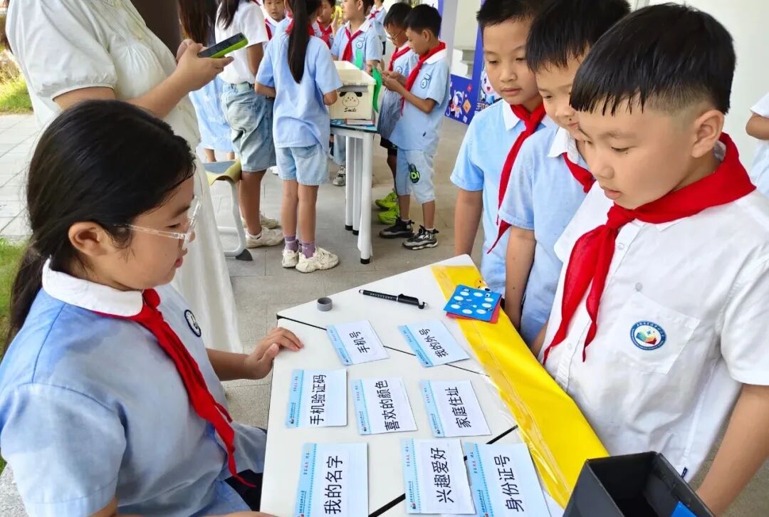 其中,最受队员欢迎的是“网络安全知识游园会”。现场设置了8个趣味闯关摊位,涵盖“火眼金睛识骗局”“隐私保护分类投”“反诈套圈圈”“安全口号拼拼乐”“密码强度大比拼”“小小网警来执勤”“家庭公约我制定”以及“VR网络风险体验”等环节。队员们手持“闯关卡”,在游戏中学习识别诈骗、保护隐私、应对网络欺凌等实用技能。本次活动还特别设置了“家庭公约我制定”环节,鼓励队员与家长共同制定家庭网络使用规则,将网络安全教育延伸至家庭,实现家校共育。