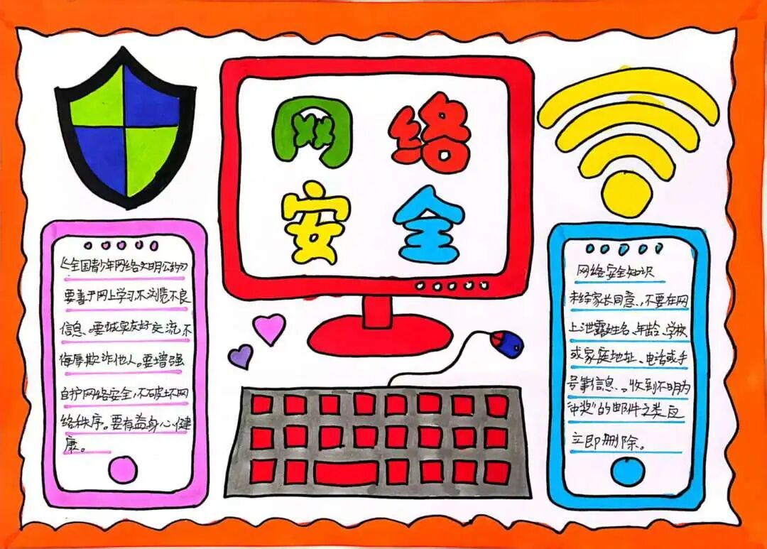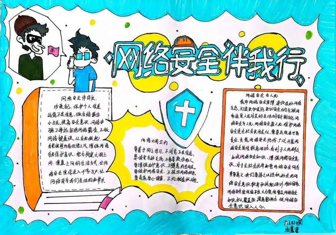 六年级的队员们化身 “小小设计师”,精心制作网络安全手抄报。每份手抄报都融入了独特的创意,或是警示标语,或是安全小贴士,将对网络安全的理解化作笔下的色彩与文字。