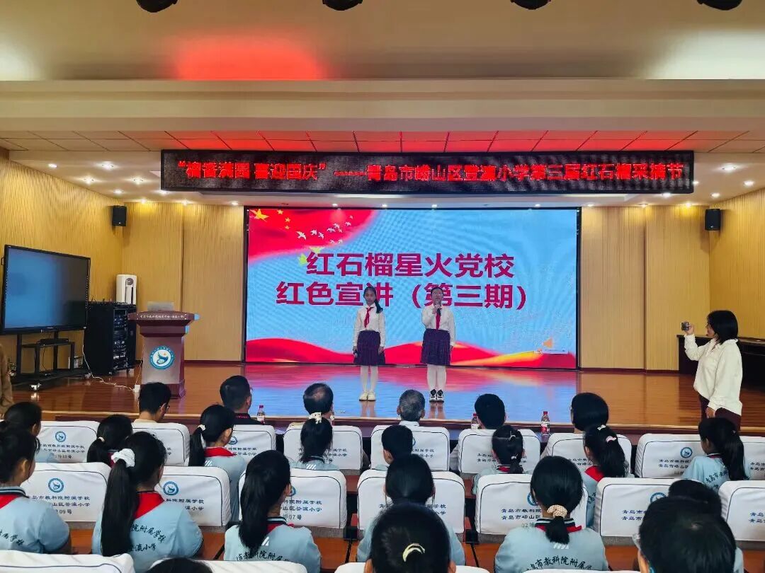 随后,队员们静静聆听辅导员讲述登瀛小学116年的办学历程,解读“红石榴”与学校精神的血脉联系。红石榴星火党校学员代表登上讲台,进行红色宣讲,她们用稚嫩却铿锵的声音,追忆革命先辈的奋斗足迹,发出“强国有我”的青春誓言。
