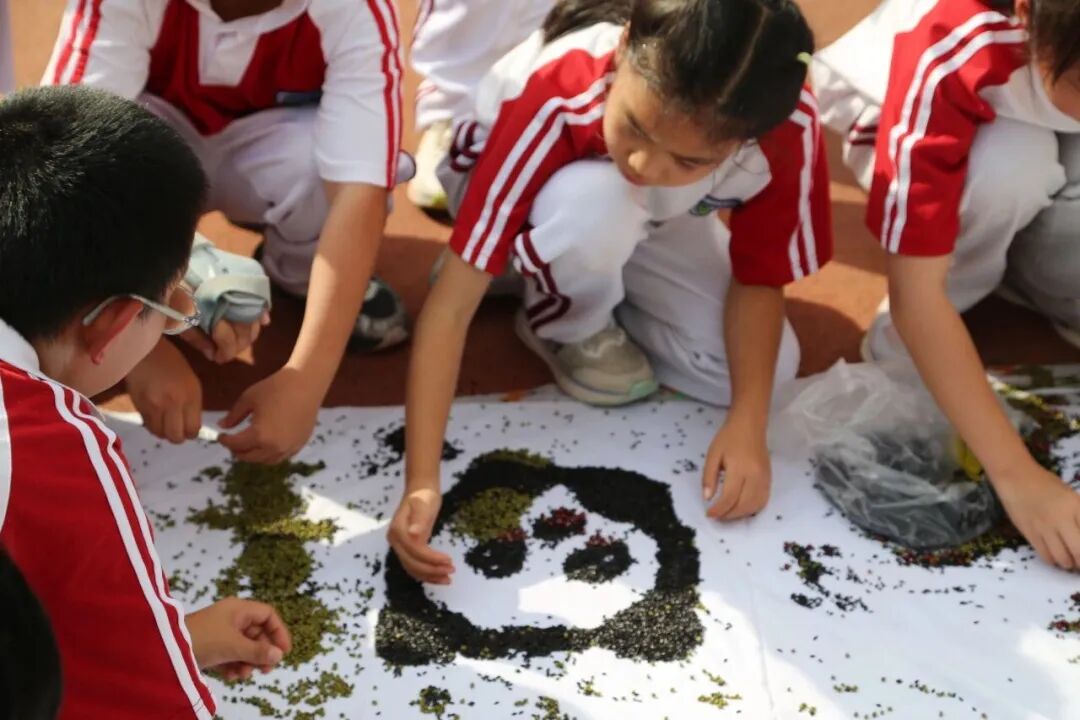 最具创意的是“杂粮艺术创作”,队员们以黑米、绿豆等农作物为“颜料”,在布上拼摆出灵动的小动物、斑斓的花朵,彼此欣赏、阵阵赞叹,不仅点亮了想象力,更感受到劳动与艺术的完美结合。
