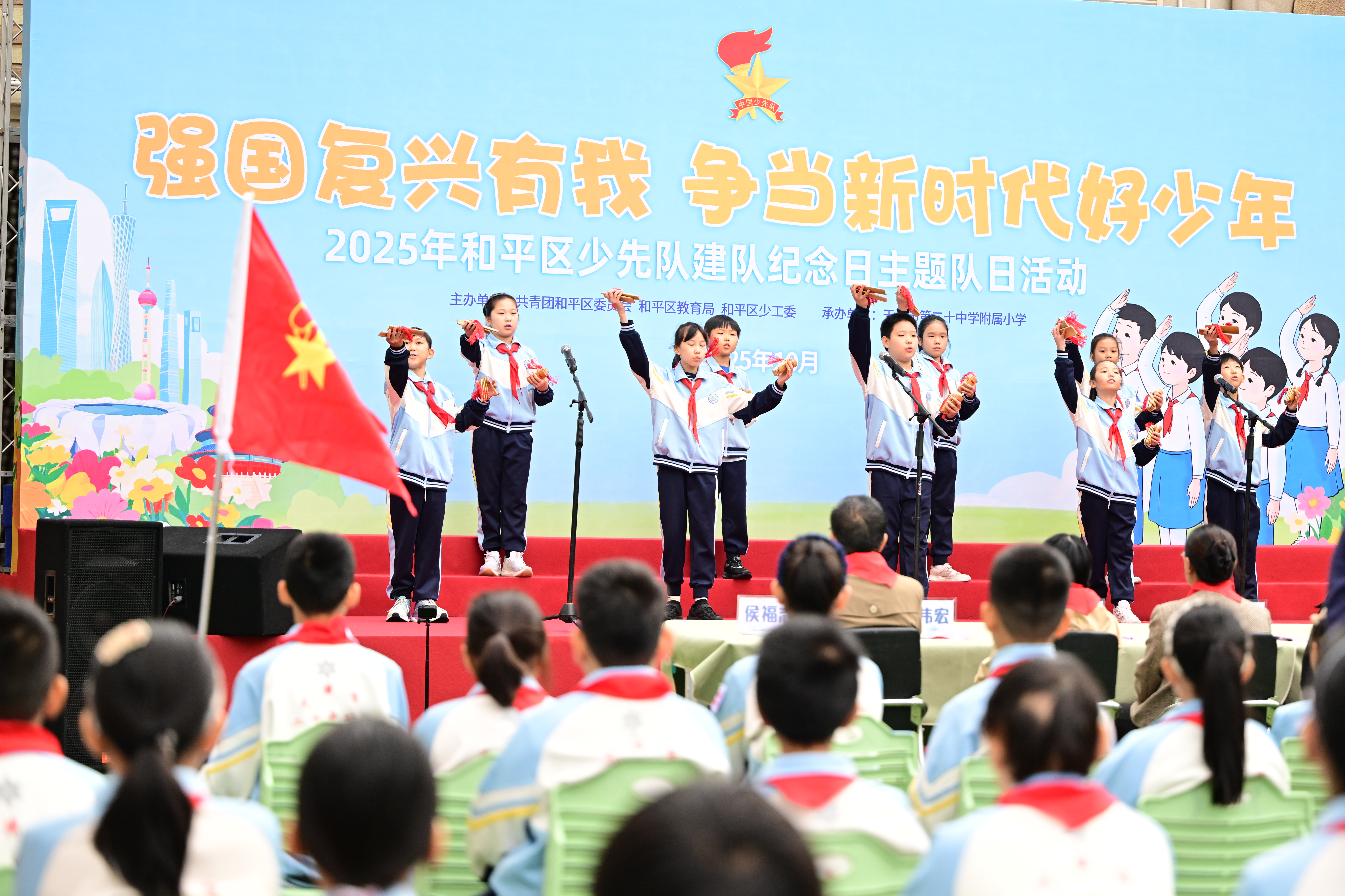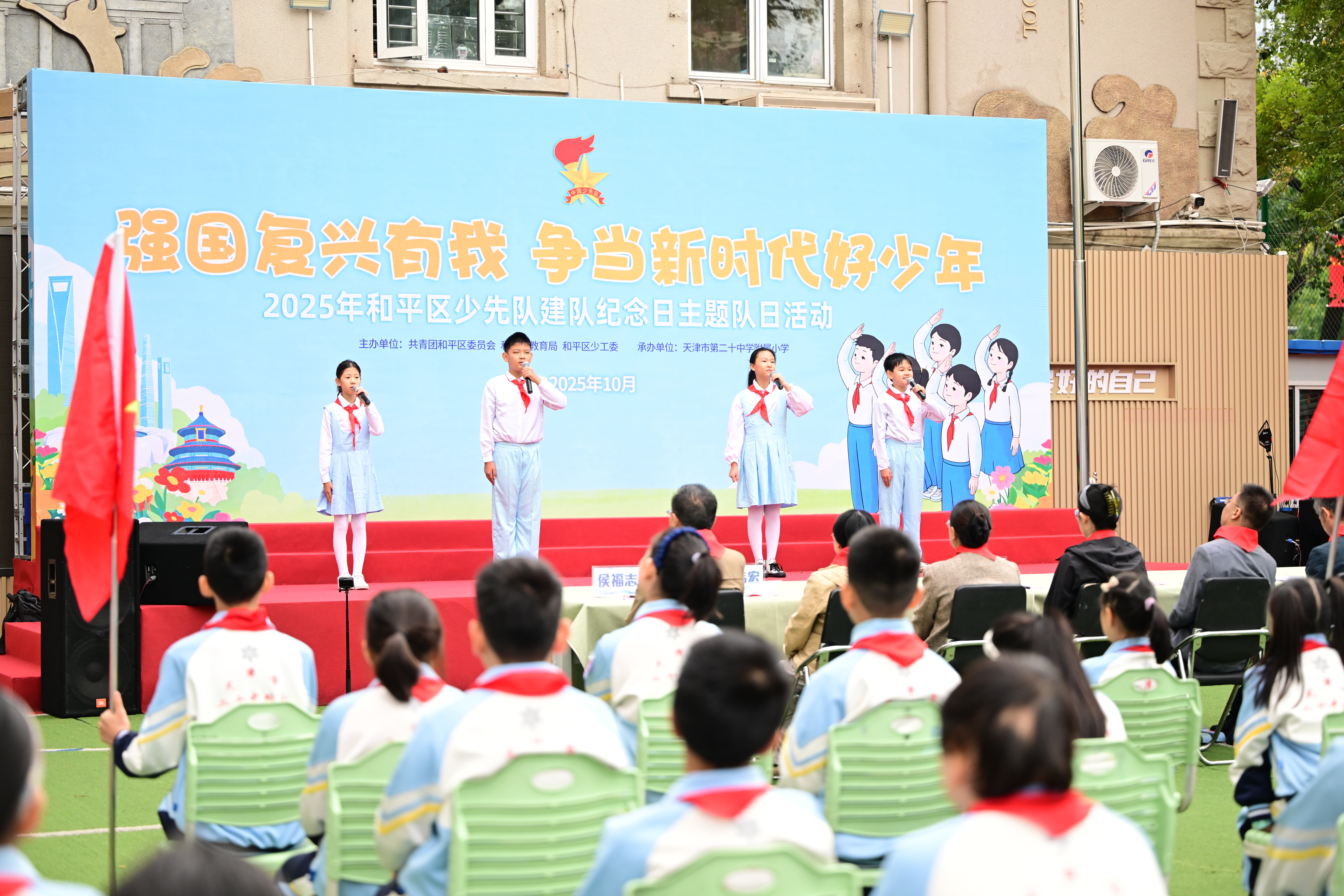 金秋时节,队旗高扬。为纪念中国少先队建队76周年,天津市和平区“强国复兴有我 争当新时代好少年”主题队日活动在天津市第二十中学附属小学隆重举行。和平区教育局党委委员、副局长冯耀忠,共青团和平区委员会副书记苏堤、和平区教育局群团工作科四级调研员、科长叶宁、共青团和平区委员会团少部部长刘睿卓、和平区教育局群团工作科侯媛媛等领导嘉宾莅临现场,与全区少先队员共庆属于少年的节日,在运河文化的深厚底蕴与少先队的红色信仰交融中,为新时代少年的成长注入温暖力量。