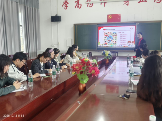 在月山镇中学会议室,首席名师、工作室导师王三财为老师们带来《做中队辅导员的秘诀》专题讲座,从少先队标志礼仪基本规范入手,通过丰富案例和动手示范,讲解红领巾规格、标准队礼、正确佩戴红领巾方法及队歌演唱等辅导员必备知识。