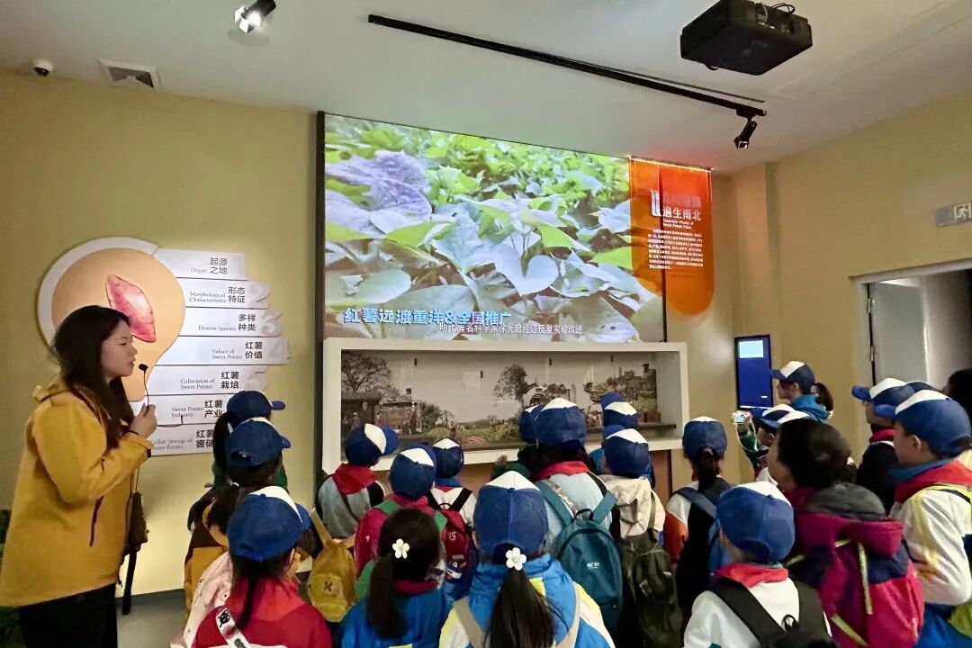 少先队员们带着心中的疑问走进红薯文化博物馆,一起解开关于红薯的奥秘。从红薯的起源传播到现代加工技术,从"红薯救荒"的历史到乡村振兴的创新实践,琳琅满目的展品让少先队员们大开眼界。在老师的讲解下,大家还了解到红薯地窖与抗战时期地下工事的巧妙联系,解锁了 “红薯” 背后的特殊意义。