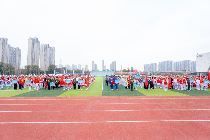 赛中,队员们精神抖擞,步伐整齐。不同队伍的服装各具特色,或整齐划一,或色彩明快,成为赛场上流动的风景。在指挥的引领下,嘹亮的号声、清晰的鼓点、整齐的镲声默契融合,奏响青春的乐章。各队精心设计的队形在指定区域内流畅变换,从整齐的方阵到富有寓意的图案,展现了无限的创意与活力。统一的服装、醒目的校牌、流利的解说与点缀其间的鲜花队员相互映衬,将整个赛场化为风采与活力竞相绽放的舞台,充分体现了各校扎实的训练成果和队员们团结协作、追求卓越的精神品质。