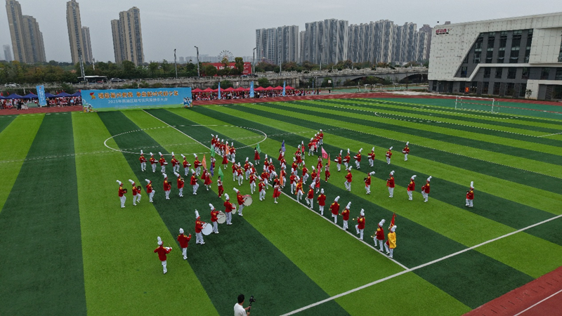 为进一步加强少先队组织建设、文化建设和队员的组织认同感与集体荣誉感,2025年11月6日上午,由湘潭市雨湖区教育局、共青团雨湖区委、雨湖区少工委联合主办的“强国复兴有我 争当新时代好少年”湘潭市雨湖区第二届鼓号队风采展示大赛在风车坪万楼学校隆重举行。