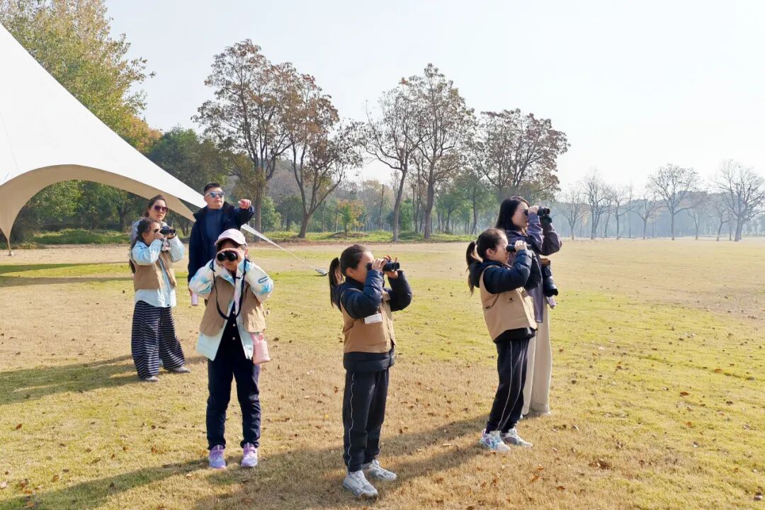 大家手持望远镜,在湖畔耐心搜寻飞鸟踪迹,尝试运用学到的技巧区分不同鸟类,在实操中熟练掌握观鸟核心技能,感受发现飞鸟的惊喜。