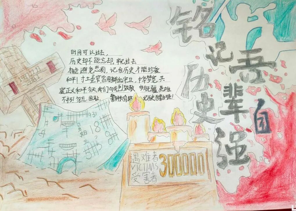此次系列教育活动激发了队员们深切的情感共鸣。大家自发拿起画笔,绘制“铭记历史”主题手抄报,呈现了“南京大屠杀”、“抗战胜利”等重要历史场景。