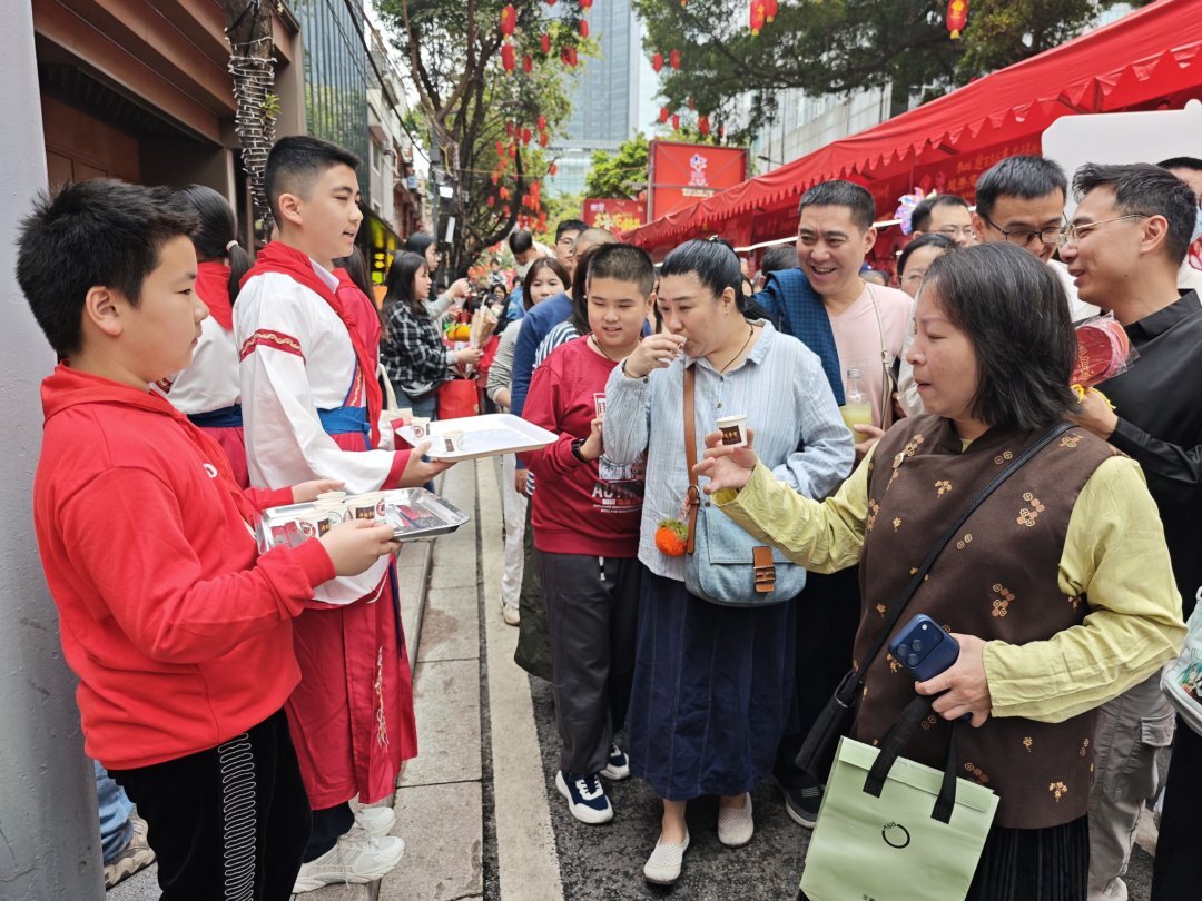 文德路小学相关负责人介绍,这既是一场融合中医药文化与新春民俗的花市活动,更是一堂以健康中国理念为底色、以公益实践为路径的“行走的思政课”。义卖所得将全额注入越秀区大塘街慈善基金会,用于帮扶辖区困难群体,让少年的善意在城市街巷中持续流淌。