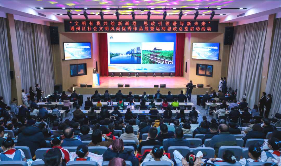 “文明有我共绘新画卷 思政引领谱写新未来”——昨日,由北京市通州区区委宣传部、通州区委教育工作委员会、宋庄镇党委联合主办的北京市通州区社会文明风尚优秀作品展暨运河思政总堂启动仪式在运河讲堂举行。活动标志着运河思政总堂正式启用,并同步启动10个大中小学思想政治教育一体化建设名师工作室。