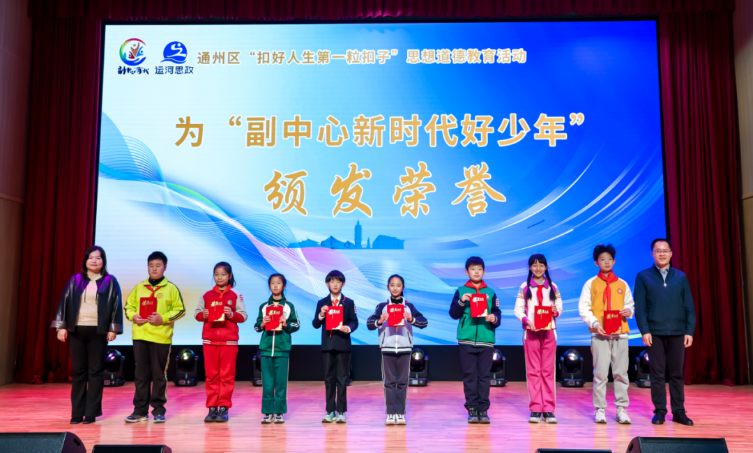 活动中,北京市委宣传部精神文明实践指导处副处长韦焕翔、通州区委教育工委副书记陈洁为副中心新时代好少年颁发了荣誉证书。通州区广泛开展了副中心“新时代好少年”主题宣传活动,2025年2人入选首都“新时代好少年”。