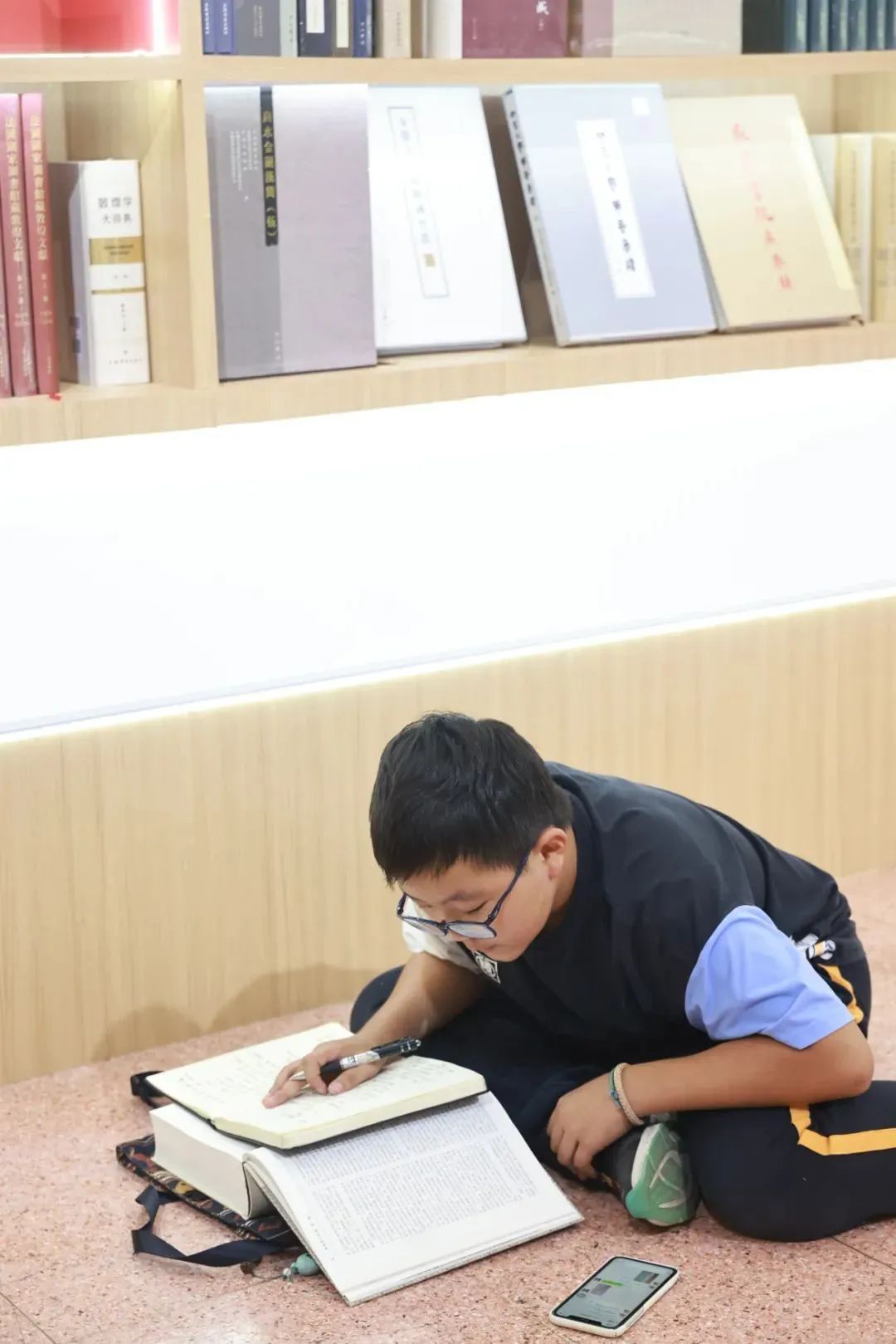 8月13日下午上海书展人潮如织一处书架角落却意外辟出小小静地一个席地而坐、埋头抄书的少年身影格外引人注目。视频中的少年是12岁的汪宏嘉一位即将升入七年级的“敦煌迷”。