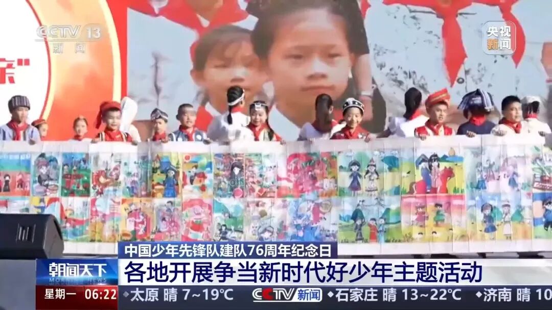10月13日是中国少年先锋队建队76周年纪念日。连日来,共青团中央、全国少工委组织各地开展“强国复兴有我 争当新时代好少年”主题活动,通过入队仪式、寻访参观、实践体验等,引领广大少先队员争当爱党爱国、勤奋好学、全面发展的新时代好少年。