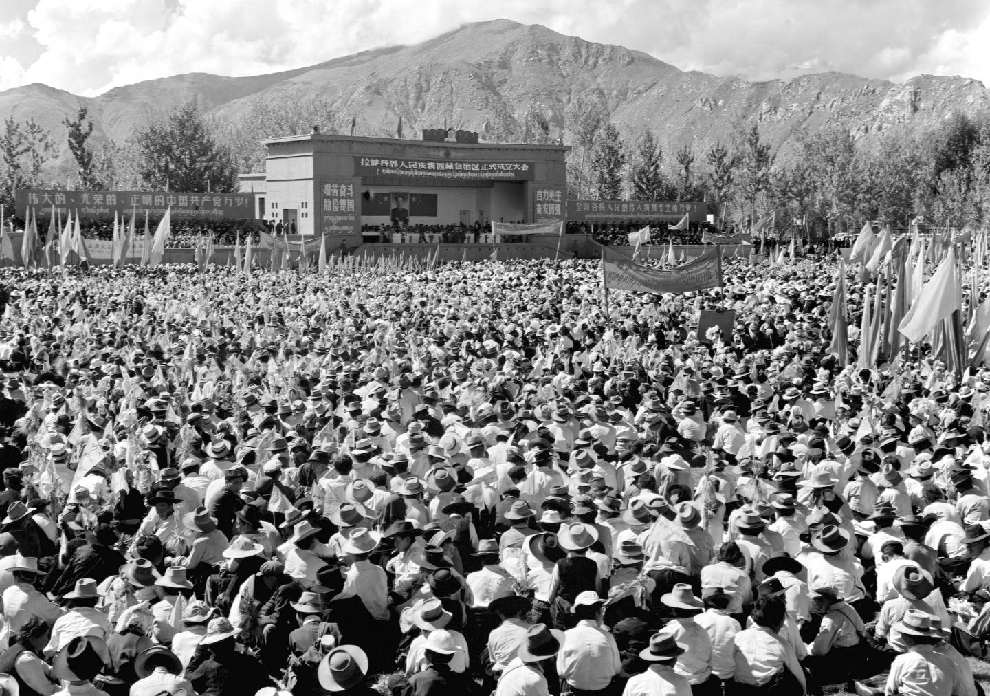 1965年9月9日,西藏自治区首府拉萨市3万多人集会,热烈庆祝西藏自治区正式成立。(新华社记者 马竞秋 摄)