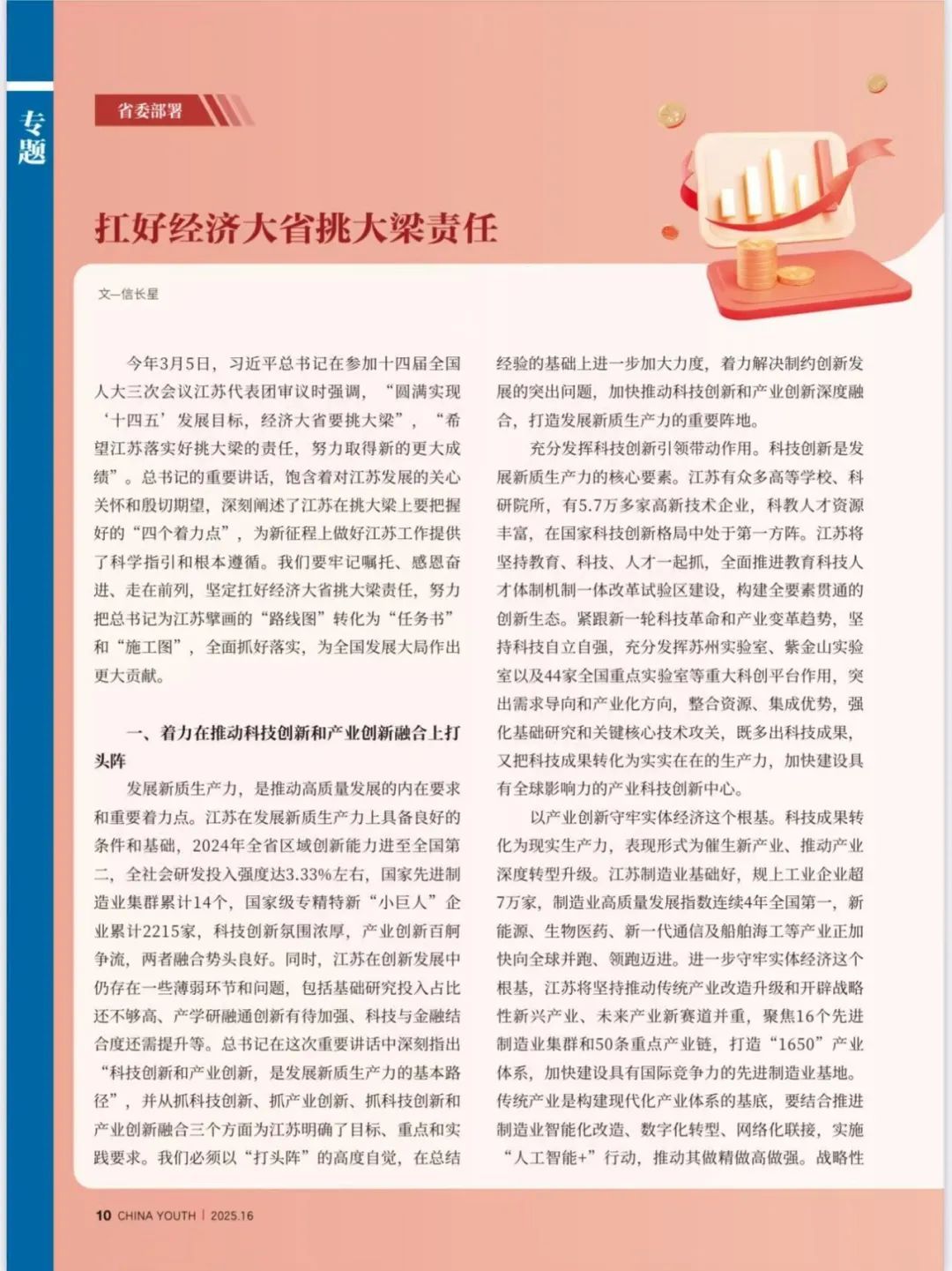 经济大省挑大梁,江苏青年勇争先——沿着习近平总书记擘画指引的方向开拓奋进