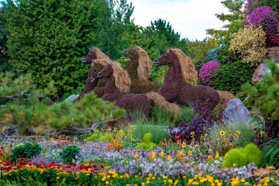 地面花卉以自然式花境布置为主,群马以观赏草为背景搭配柳叶白菀等白花植物还原群马水边奔腾的景象,与黄河瀑布的壮观景象呼应,形成一幅波澜壮阔的花坛景观。
