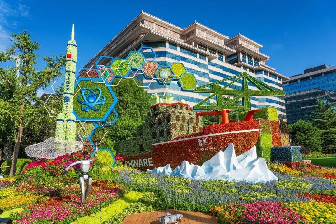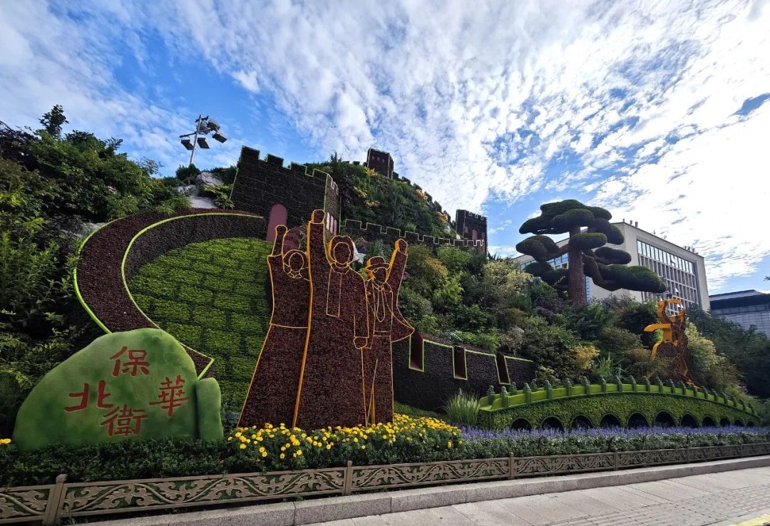 从建国门到复兴门,10座花坛串联起80余年的历程,既展现了中国人民抗日战争时期的艰苦卓绝、众志成城,也描绘了新时代国家日新月异的发展以及人民美好生活的场景。