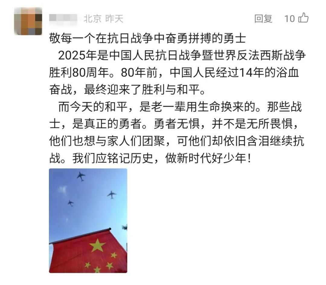 你能从阅兵式中感受到祖国的强大和团结,还明白了我们这一代人肩负的重任,