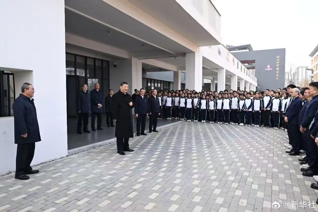 北京市援建的北京四中雄安校区2023年8月投入使用,现有学生380多人。教学楼里,学生们正在上课。习近平走进初一(2)班教室,同师生交谈,了解教学情况。他希望把北京四中办学的好经验好做法带过来,用心用情呵护孩子们身心健康,促进孩子们全面发展。