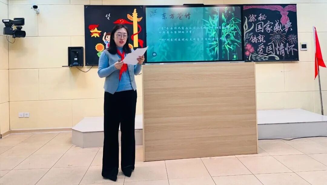 张家湾镇中心小学中心校区六(4)中队辅导员陈辰以“国家盛典”为独特视角,借助高清影像资料,带领队员“沉浸式”走进93阅兵现场。队员们在震撼与感动中深刻理解 “国家强大”的丰富内涵,将油然而生的爱国情怀,转化为 “努力学习、报效祖国”的内生动力,实现了“家国情怀”与“个人成长”的深度融合。