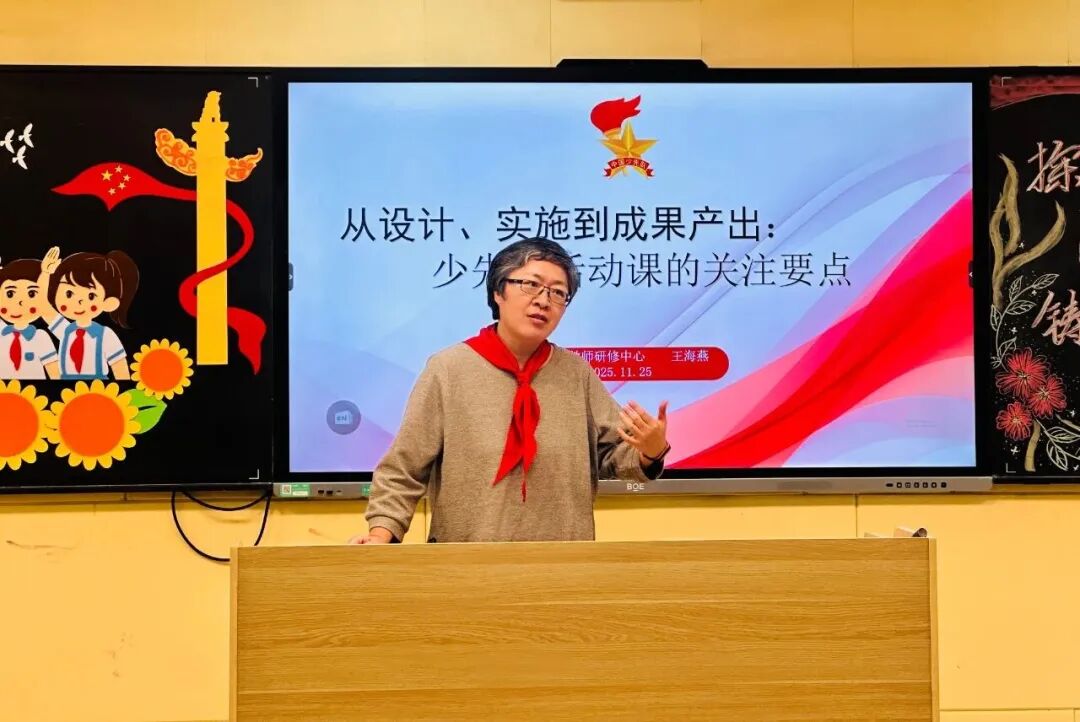 结合两节课例及中队建设分享,通州区教师研修中心团队研修员王海燕老师展开专业点评与指导,并以《从设计、实施到成果产出:少先队活动课的关注要点》为主题,围绕“活动课文本设计、实施、撰写”等辅导员普遍关注的问题,拆解活动课设计逻辑等关键策略,为在场辅导员破解日常教学困惑、提升活动课质量提供了清晰路径。