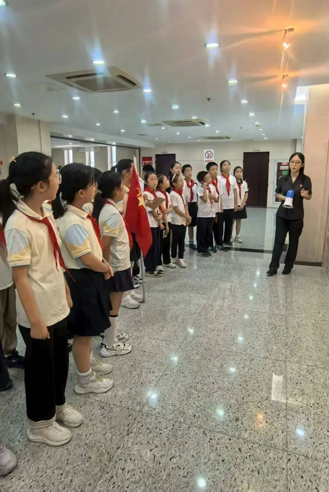 为筑牢队员们的法治思想根基,提升自我保护能力,江苏省南通市海南小学四叶草班的少先队员们怀着好奇与期待,走进海门区人民法院,开启了一场意义非凡的“红领巾法治寻访”之旅。