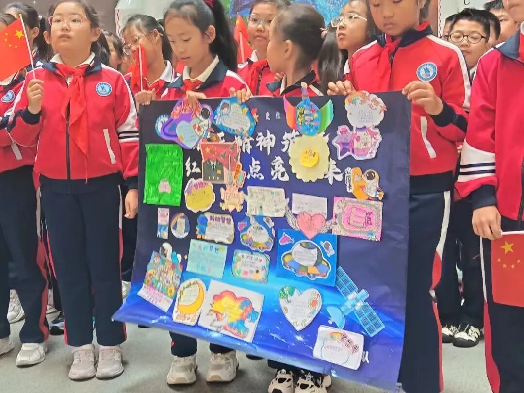 在航天精神的感召下,队员们纷纷拿起画笔,在梦想卡片上写下心声:“我要成为航天工程师,制造最棒的火箭!”“学好科学知识,为中国航天贡献力量!”这些稚嫩却坚定的话语,满含着队员们对航天事业的无限憧憬和对未来的美好期许。最后,全体少先队员手持梦想卡片,在鲜红的少先队队旗前庄严宣誓,稚嫩的声音铿锵有力,许下了逐梦航天、报效祖国的青春承诺。