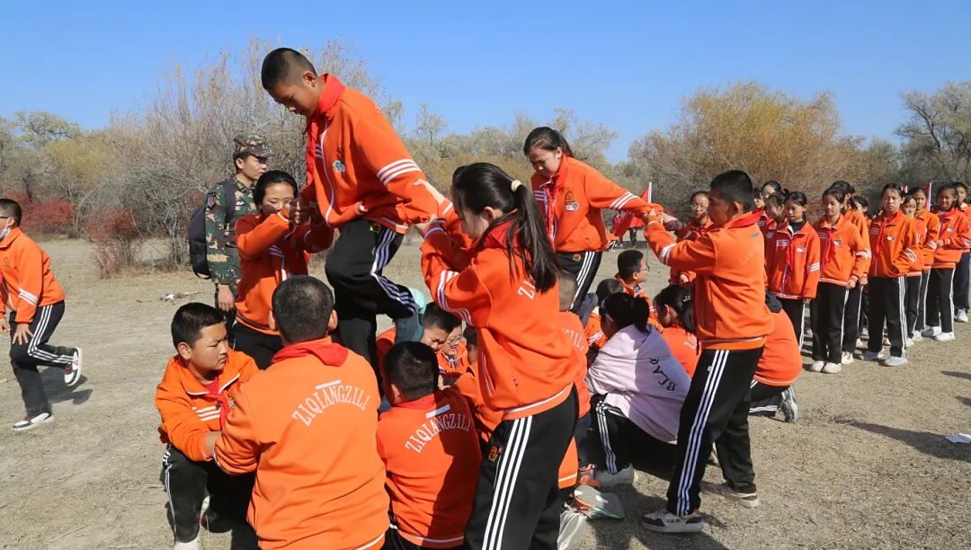 在“巧渡金沙江”任务中,16名“小红军”俯身搭建“人桥”,其余队员屏息静气,踏着战友团结的手臂依次通过。那一刻,纪律与团结成为无声的语言,队员们用身体力行的方式理解了什么是“众志成城”。