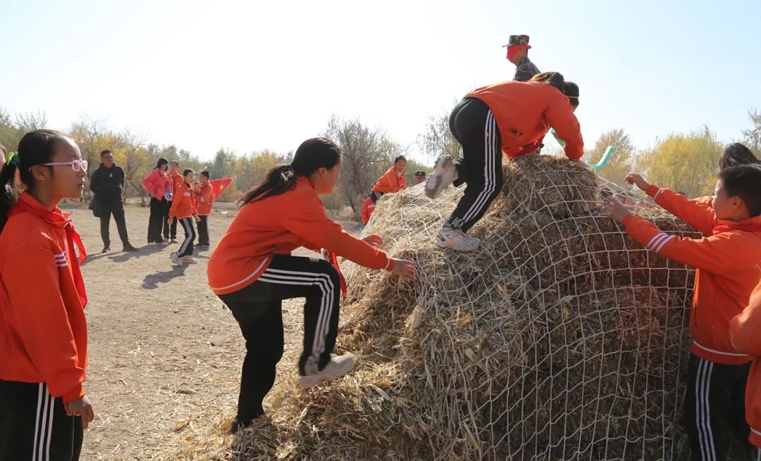 在“翻雪山”任务中,蒙眼“狙击手”不断挥舞拦截棒,“小红军”们沉着冷静,在模拟雪山上稳步前行。专注的眼神、灵活的身姿,信念与定力帮助他们突破重重“封锁”。在“过草地”时,队员们肘膝并用,在绳网下艰难穿行。他们尘土沾衣、汗水满面,却无人退缩,坚韧的品格在一次次坚持中淬炼成型。