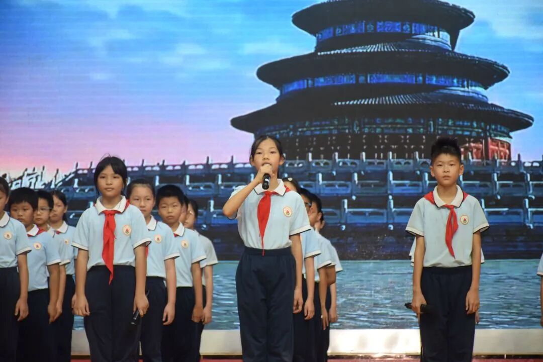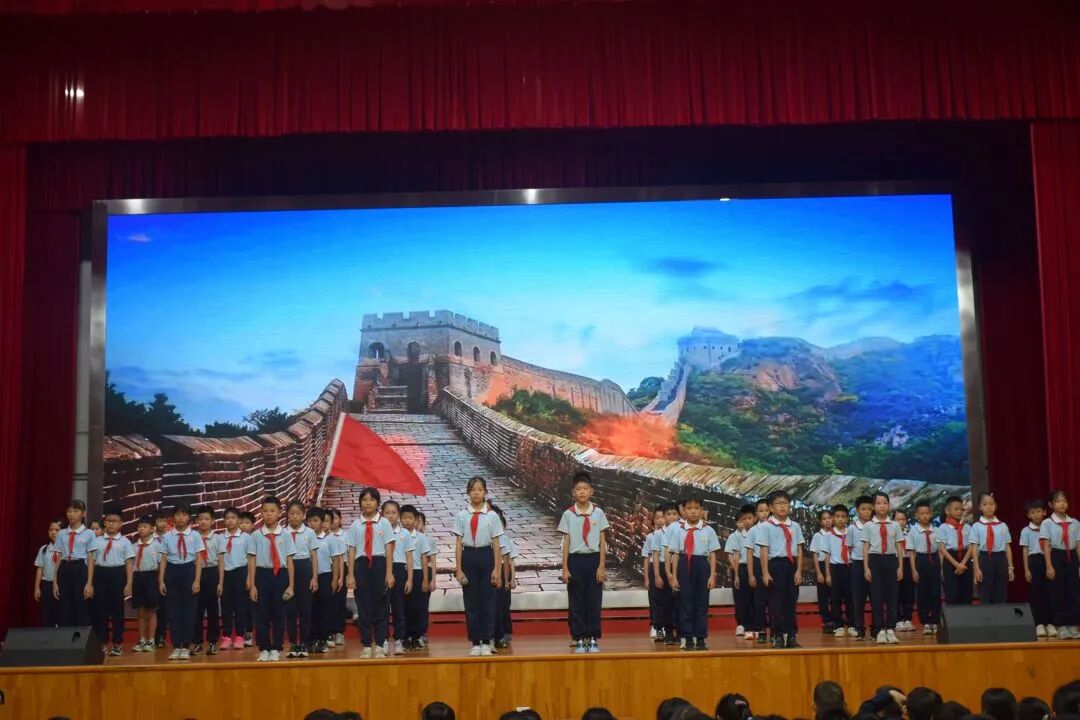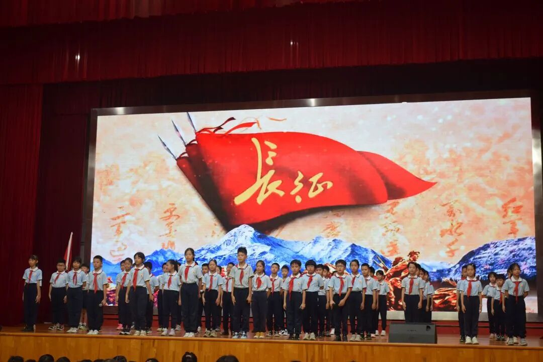 随后,队员代表身着端庄校服,以清澈的嗓音唱出“中华五千年,多少英雄浮现,战火里的容颜触动心弦。不灭的信念红船无畏艰险,革命精神永远在心间。”展现新时代少年儿童的坚定信念。