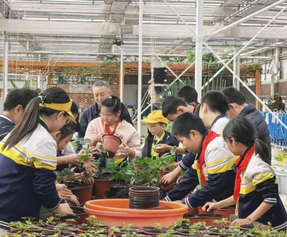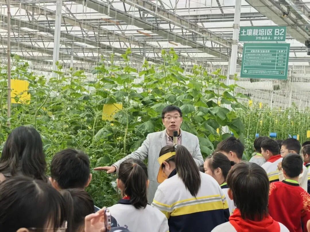 实验基地里,队员们不但参观了温室区的各类植物,还亲手栽种草莓苗,小心翼翼地培土、浇水,感受着生命的力量与劳动的快乐,也体会到农业科技成果带来的美好生活。