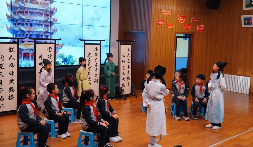 “参演《小兵张嘎》让我读懂了革命先辈的初心,学会坚持、懂得协作,更读懂了革命先辈的初心。” 五年级队员宛湘婷的感言道出了众多少先队员的心声。六年级辅导员祁颖在指导《桥》时,始终怀揣清晰的育人初心:“我们组织队员们排练课本剧《桥》,正是想借老支书的形象,读懂共产党员‘守土有责’的初心。我们想把这份舍己为人的精神刻在队员们心中,让红色信仰代代相传。”