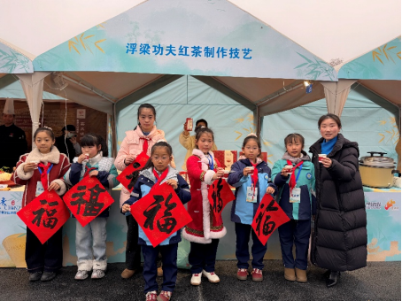 近日,由江西省景德镇市人民政府主办的“瓷韵新生,景秀CHINA”景德镇陶瓷文化生态保护实验区展示活动开幕。浮梁县第四小学戴语萱、张梓莹、汪子墨、汪梓涵、吕韩熙、但铃萱、朱梓莹7名同学,获评浮梁工夫红茶制作技艺“小小非遗传承人”,受邀亮相活动,展现浮梁少年非遗传承风采。