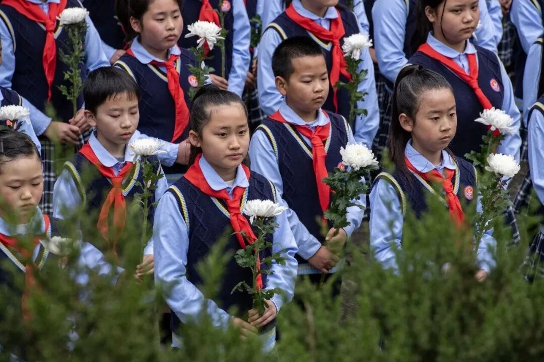 仪式最后,全体少先队员手持小白花,缓步绕行烈士陵园一周。一朵朵素洁的白花,被轻轻安放在墓碑前,寄托着无尽的哀思与永恒的敬仰。