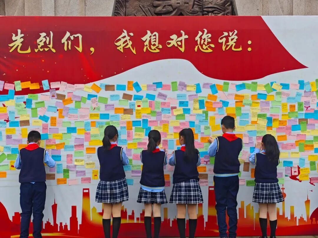完成系列活动后,青少年们列队前往初心广场,将提前书写的留言贴张贴于留言墙,一句句“烈士,我想对您说”,既是对先烈的深情告白,更是新时代青少年传承红色基因、勇担时代使命的坚定承诺。