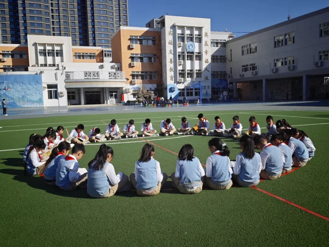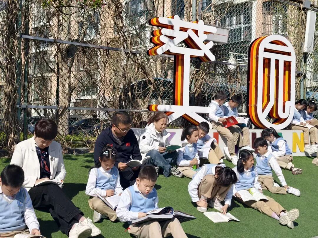 诵诗声落,悠扬旋律漫遍校园,全体师生步入「一小时无干扰阅读」时光,让心沉浸在文字的世界里,与书温柔相拥。一至五年级的队员们,在辅导员的带领下携精选书籍,奔赴两校区21处自主阅读场地。草坪边、树荫下、走廊转角……整个葵园皆是“移动书房”。席地而坐,倚阶而读,手中有书,目之所及,皆是春天。