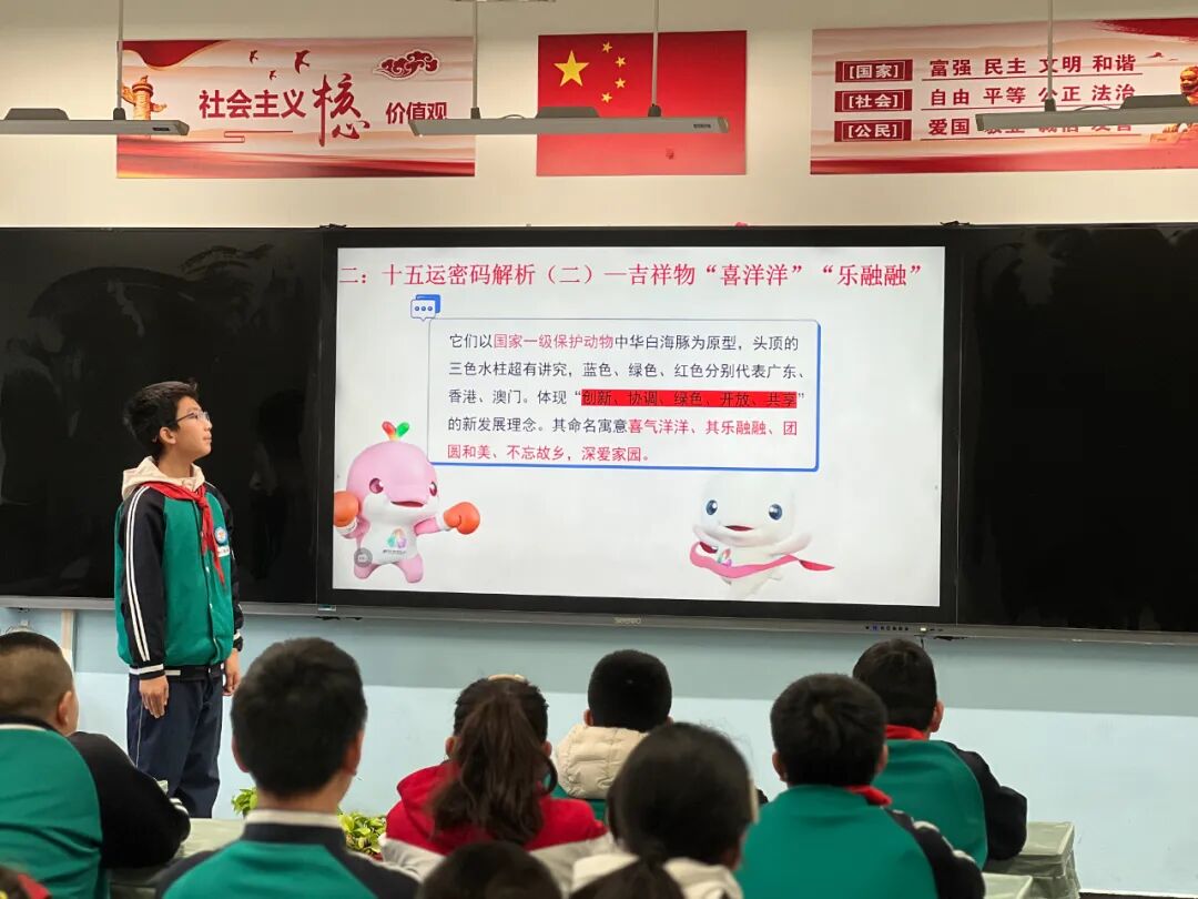活动期间,多个名师工作室还精心设计了特色队课,引导队员深入探寻“十五运”中蕴含的发展、科技、创新、逐梦、团结、富强等时代密码,让少年儿童在体验中理解“体育强国”的深刻内涵。