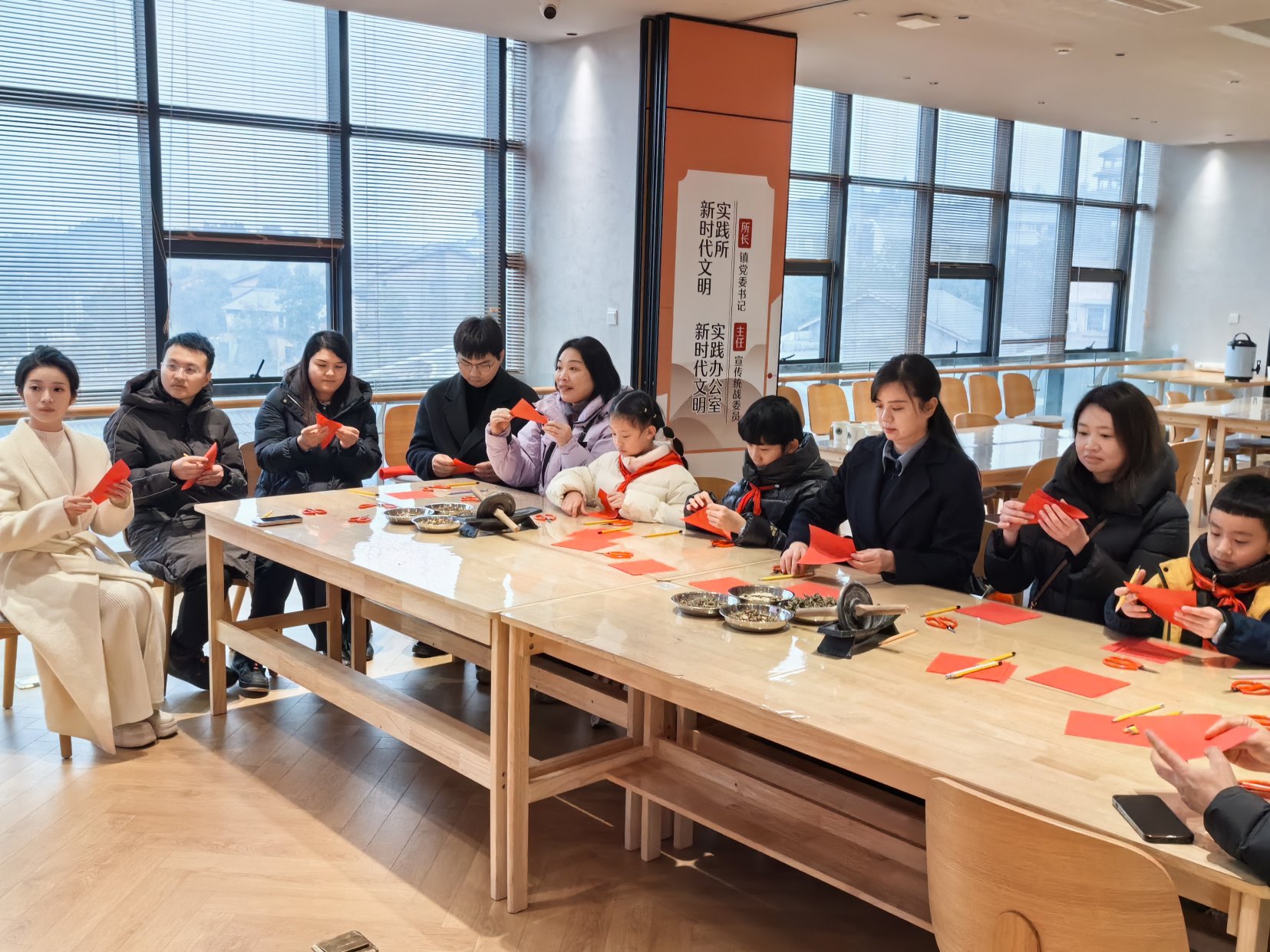 在“甜城悦读·长江书屋”,辅导员们与队员家庭一同体验非遗文化。大家亲手制作香囊、剪窗花,在一针一线、一剪一折间感受传统技艺的温度。