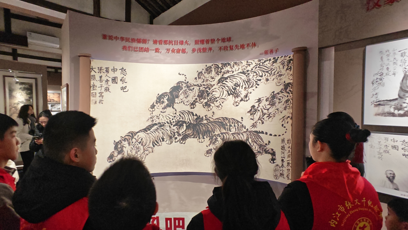 研学队伍来到张大千博物馆。辅导员们跟随红领巾讲解员,深入了解张大千、张善子先生以画寄情、以艺报国的人生历程。在《怒吼吧,中国》等作品前,大家真切感受到艺术家炽热的家国情怀,进一步坚定了以文化人、培根铸魂的育人使命。