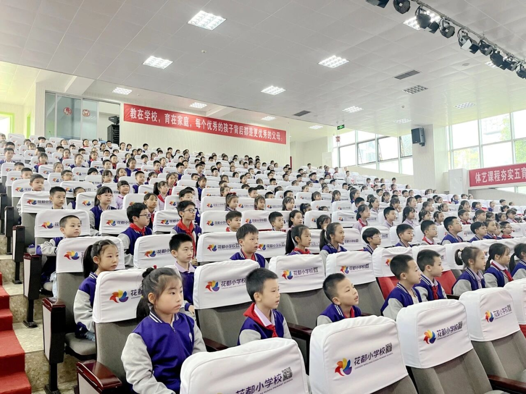 花都小学组织开展了主题观影活动,300余名在日常学习中表现优异的学生凭奖励获得的电影票,走进了蒲公英影剧院的首映现场。在小小工作人员的引导下,同学们自觉遵守秩序,安静观影,展现了良好的文明素养。